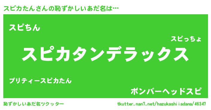 | 意味不明あだ名 | 『自称スピカたん』『永久保存スピカたん』 |