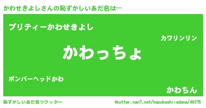 | ヒーロー風カッコイイあだ名 | 『仮面カワダー』『スーパーカワセキヨシ』 |