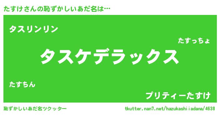 | ヒーロー風カッコイイあだ名 | 『最強戦士タスケ』『銀牙騎士タス』 |