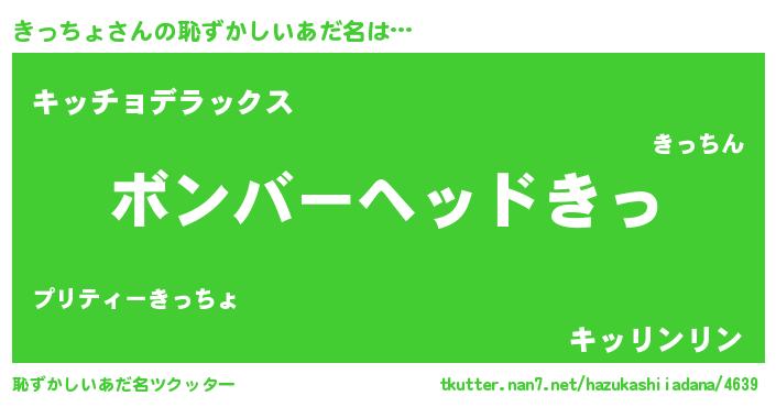 | ヒーロー風カッコイイあだ名 | 『正義の使者きっちょ』『暗黒騎士キッ』 |