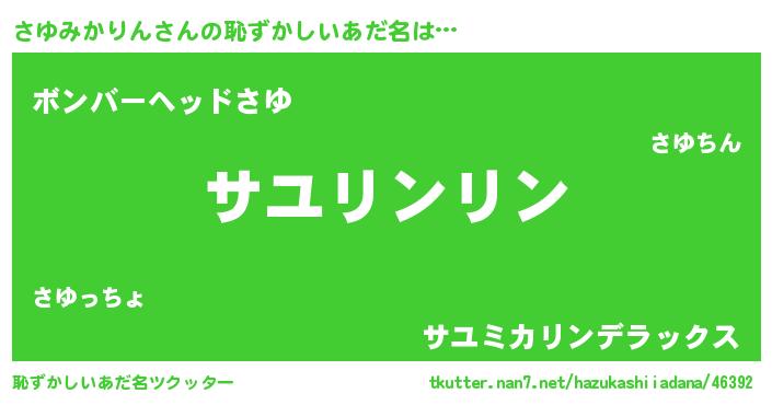 | ヘコむあだ名 | 『さゆぷりん』『さゆみかりん(笑)』 |
