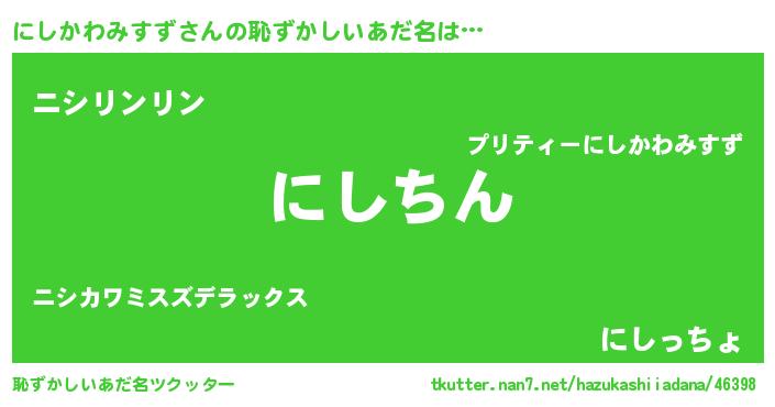 | ポケモン風あだ名 | 『ゼニニシ』『ヒニシカワミスズ』 |