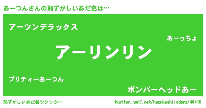 | 男性向けラノベタイトル風あだ名 | 『ダンジョンにあーつんを求めるのは間違っているだろうか』 |