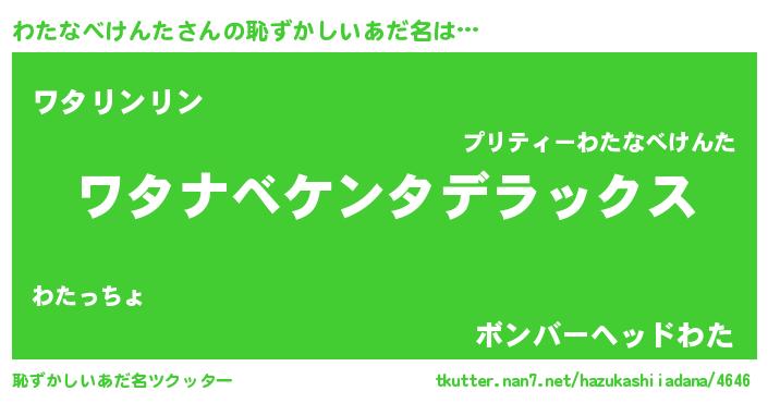 | ヘコむあだ名 | 『わたお』『わたにゅー』『豆乳』 |
