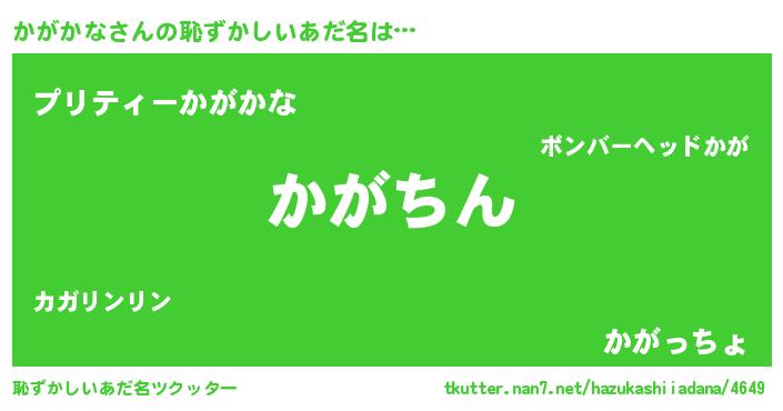 | ヘコむあだ名 | 『かがかな(震え声)』『かがにー』 |