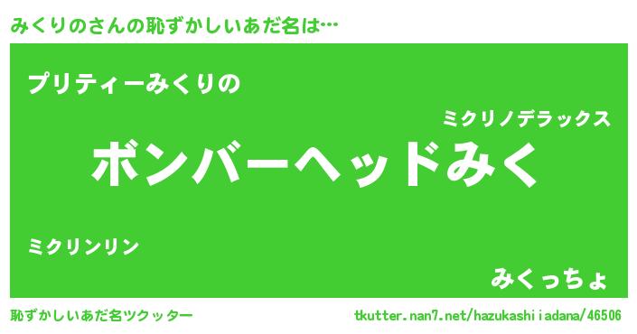 | ポケモン風あだ名 | 『ミクゴンZ』『ミックウザ』 |