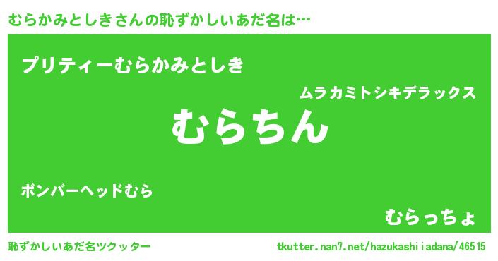 | ヘコむあだ名 | 『むらかみとしき(苦笑)』『むらにゅー』 |