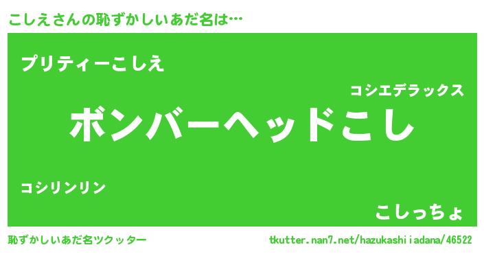 | 意味不明あだ名 | 『眠気覚ましガムこしえ味』『自称こしえ』 |