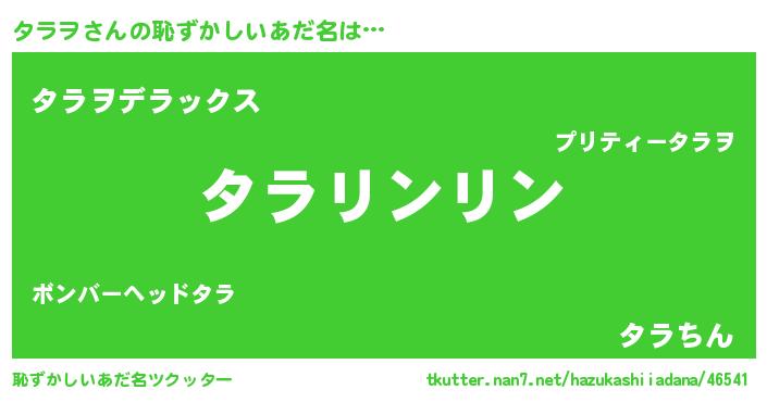 | 女子向けラノベタイトル風あだ名 | 『タラヲ様がみてる』『闇のタラヲ』 |