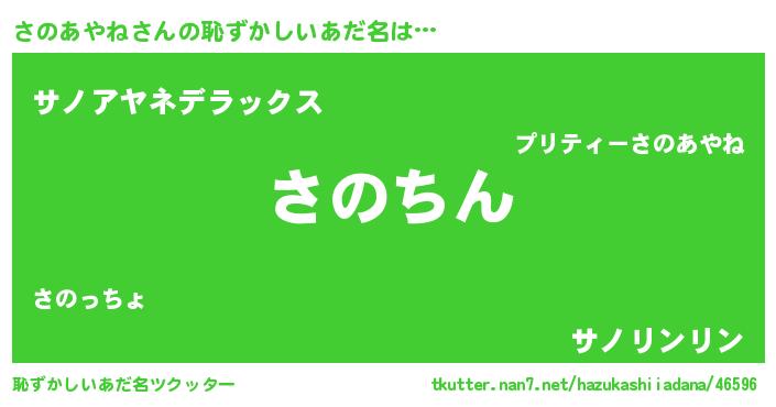 | 意味不明あだ名 | 『永久保存さのあやね』『自称さのあやね』 |