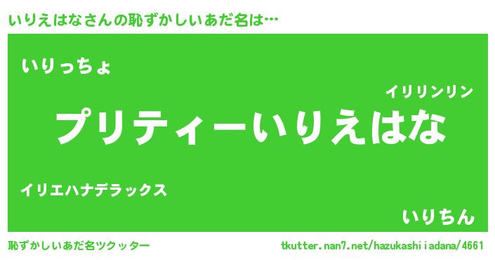 | 胡散臭い通販商品みたいなあだ名 | 『モテモテ間違いなし霊験あらたかなお札…その名も「いりえはな」』 |