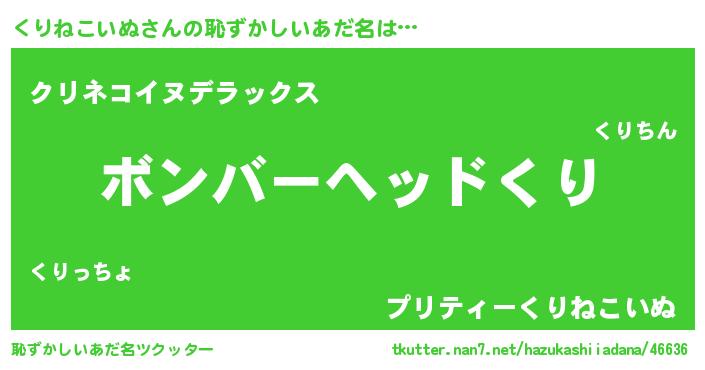 | ヘコむあだ名 | 『くりにー』『くりねこいぬ(小並感)』 |