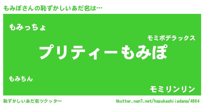 | ファンタジー風あだ名 | 『モミフェル』『エターナルモミポー』 |