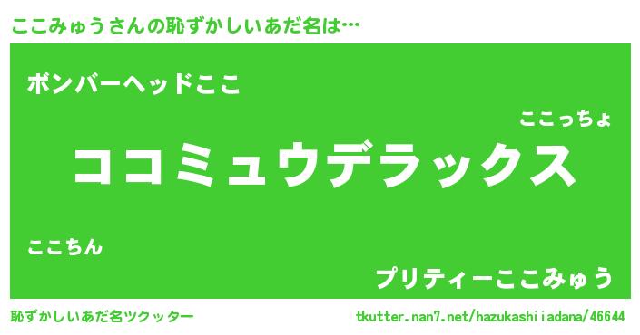 | 意味不明あだ名 | 『自称ここみゅう』『ペロリンここみゅう』 |