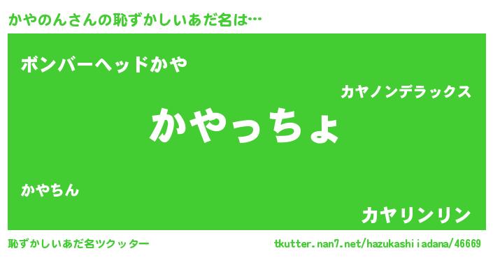 | 意味不明あだ名 | 『かやのんフォーエバー』『自称かやのん』 |