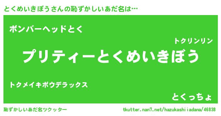 | ヘコむあだ名 | 『とくもー』『豆乳』『とくっちょ』 |