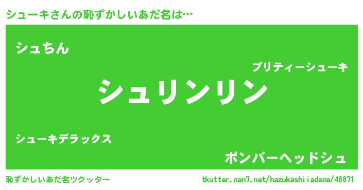 | 可愛いあだ名 | 『シっュぃー』『シューキママ』 |