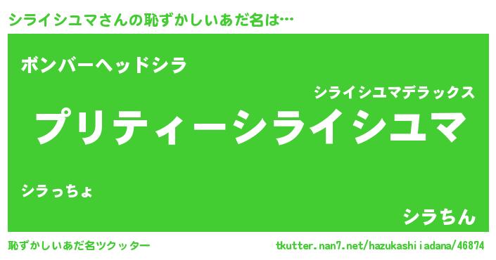 | ヒーロー風カッコイイあだ名 | 『仮面シラダー』『スーパーシライシユマ』 |
