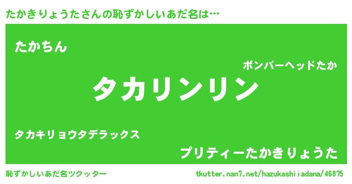 | 男性向けラノベタイトル風あだ名 | 『たかきりょうたの嫁は女の子じゃないと思った?』 |