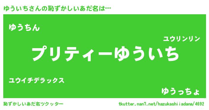 | 意味不明あだ名 | 『ペロリンゆういち』『永久保存ゆういち』 |