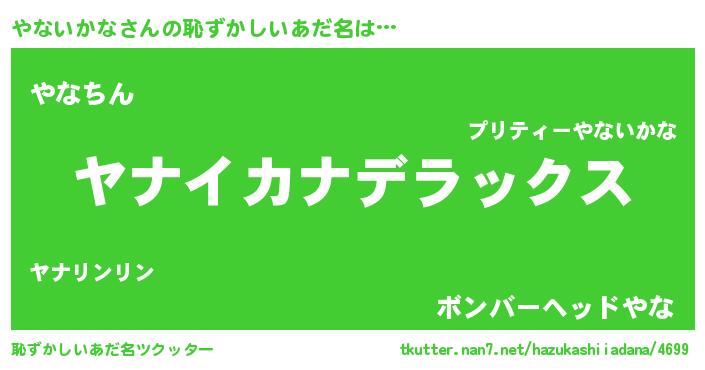 | ヘコむあだ名 | 『やないかな(爆)』『やなっふぃ~』 |