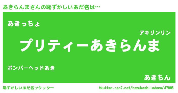 | ヘコむあだ名 | 『あきにー』『レバニラ』『あきお』 |