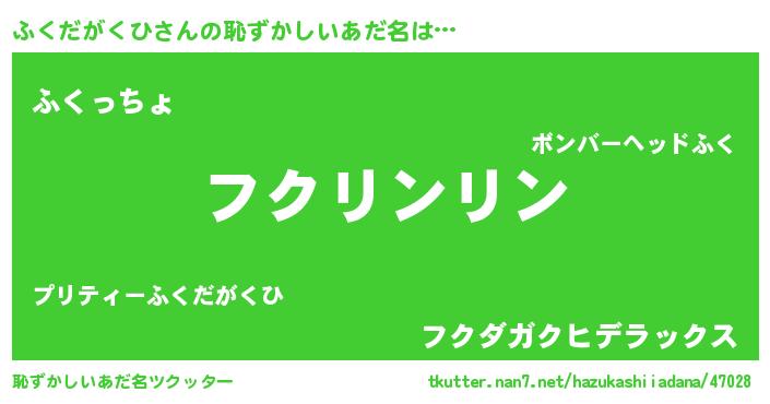 | ポケモン風あだ名 | 『ヒフクダガクヒ』『フクダダネ』 |