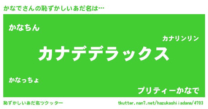 | ヘコむあだ名 | 『かなで(苦笑)』『かなにゅー』 |