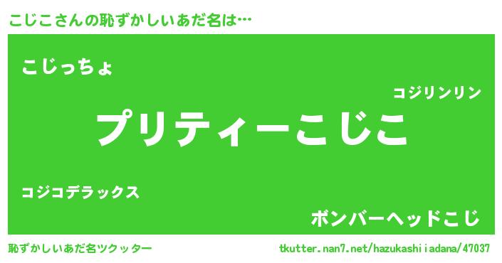 | ヒーロー風カッコイイあだ名 | 『スーパーコジコ』『ウルトラこじこマン』 |