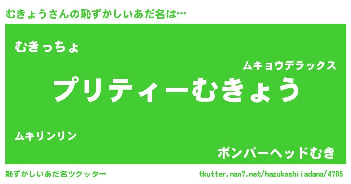 | ヒーロー風カッコイイあだ名 | 『スーパームキョウ』『愛の使者むきょう』 |