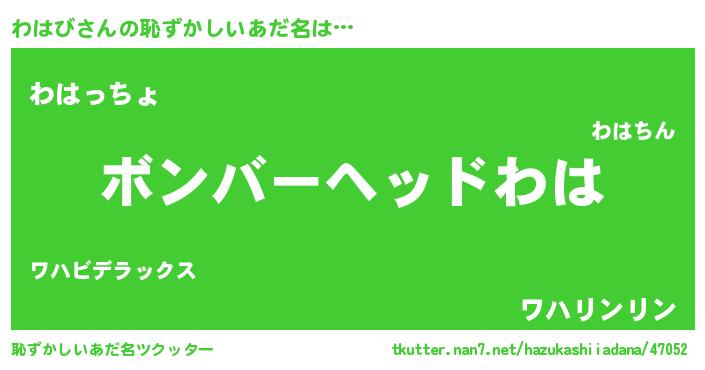 | ヒーロー風カッコイイあだ名 | 『天空の使者わはび』『魔戒騎士ワハ』 |