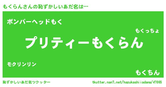 | ヘコむあだ名 | 『もくっふぃ~』『もくらん(笑)』 |