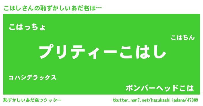 | ヘコむあだ名 | 『こはもー』『豆乳』『こはし(爆)』 |