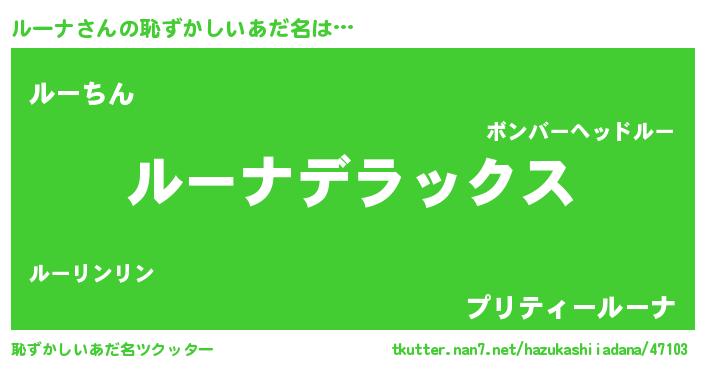 | ヘコむあだ名 | 『ルーナ(小並感)』『ルーにゅー』 |