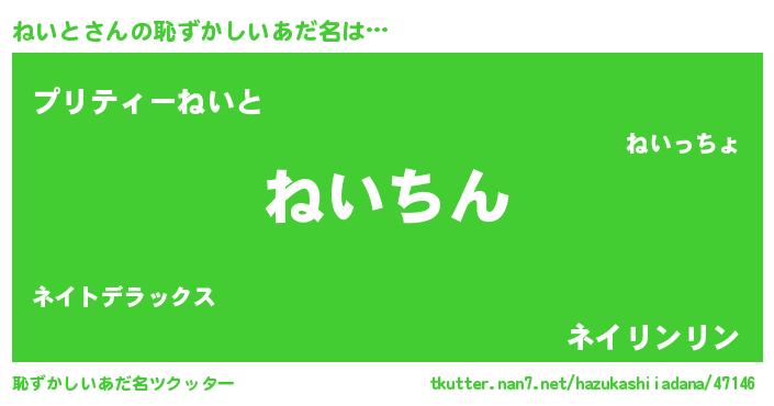| ヘコむあだ名 | 『ねいと(笑)』『ねいもー』 |
