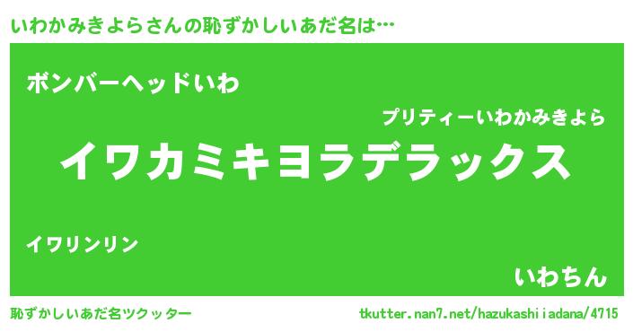 | ヘコむあだ名 | 『いわかみきよら(苦笑)』『いわっふぃ~』 |