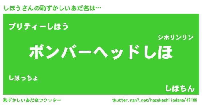 | ヘコむあだ名 | 『しほもー』『しほう(爆)』『豆乳』 |