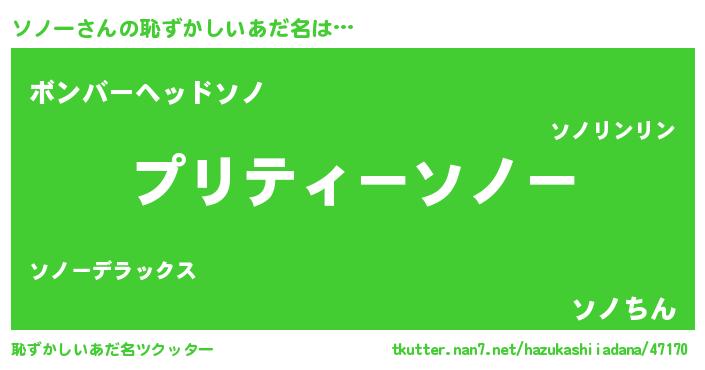 | 意味不明あだ名 | 『住所不定無職ソノー(11歳)』 |