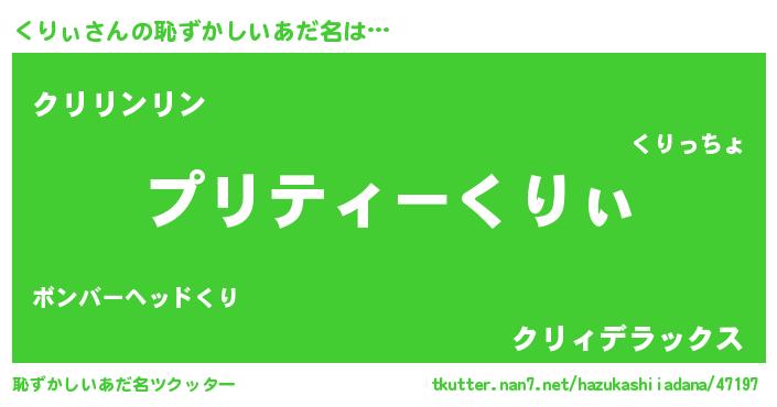 | 意味不明あだ名 | 『ペロリンくりぃ』『自称くりぃ』 |