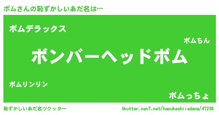 | ヒーロー風カッコイイあだ名 | 『友情の使者ボム』『超時空戦士ボム』 |