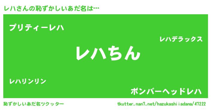 | ヘコむあだ名 | 『レハ(笑)』『レハふぇ~』『レハお』 |
