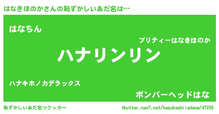 | 男性向けラノベタイトル風あだ名 | 『はたらくはなきほのかさま!』 |