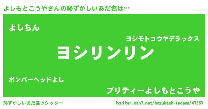 | 意味不明あだ名 | 『とにかく怪しいよしもとこうや』 |