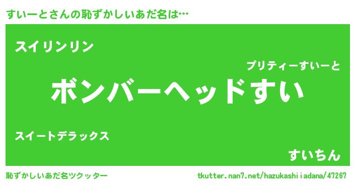 | ヘコむあだ名 | 『すい太郎』『すいーと(爆)』 |