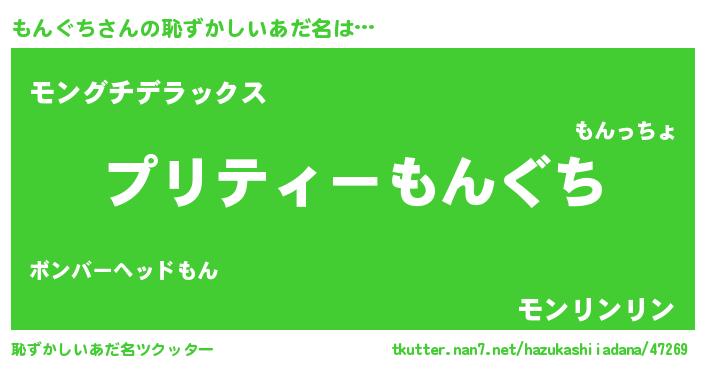 | 意味不明あだ名 | 『ペロリンもんぐち』『自称もんぐち』 |