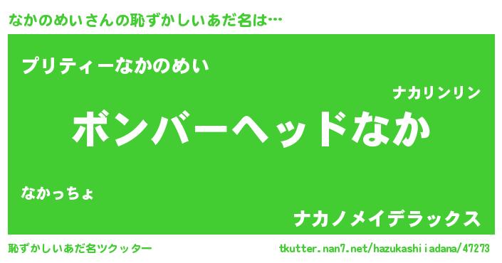 | ヒーロー風カッコイイあだ名 | 『慈愛の使者なかのめい』『銀牙騎士ナカ』 |