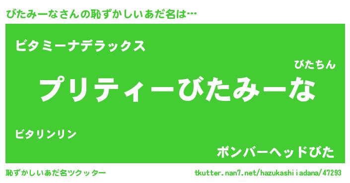 | 意味不明あだ名 | 『ペロリンびたみーな』『自称びたみーな』 |