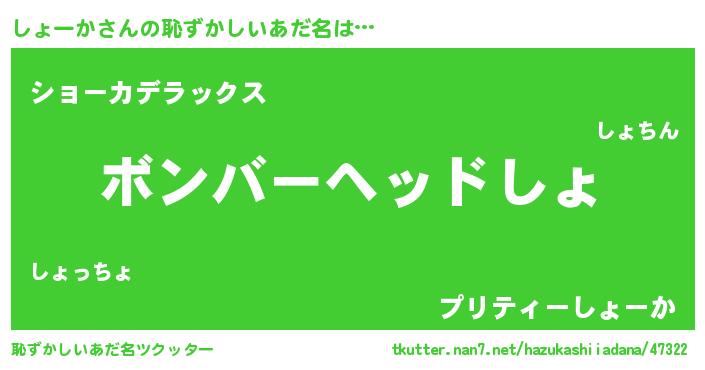 | 男性向けラノベタイトル風あだ名 | 『この素晴らしい世界にしょーかを!』 |