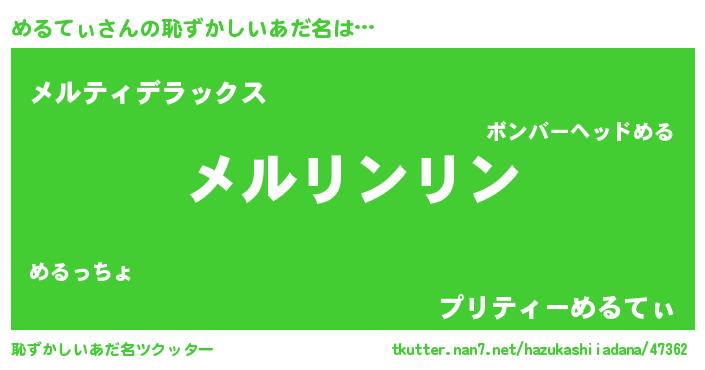 | ヘコむあだ名 | 『めるお』『めるにゅー』『レバニラ』 |