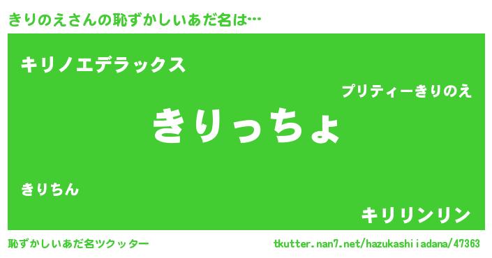 | 意味不明あだ名 | 『きりのえフォーエバー』『自称きりのえ』 |
